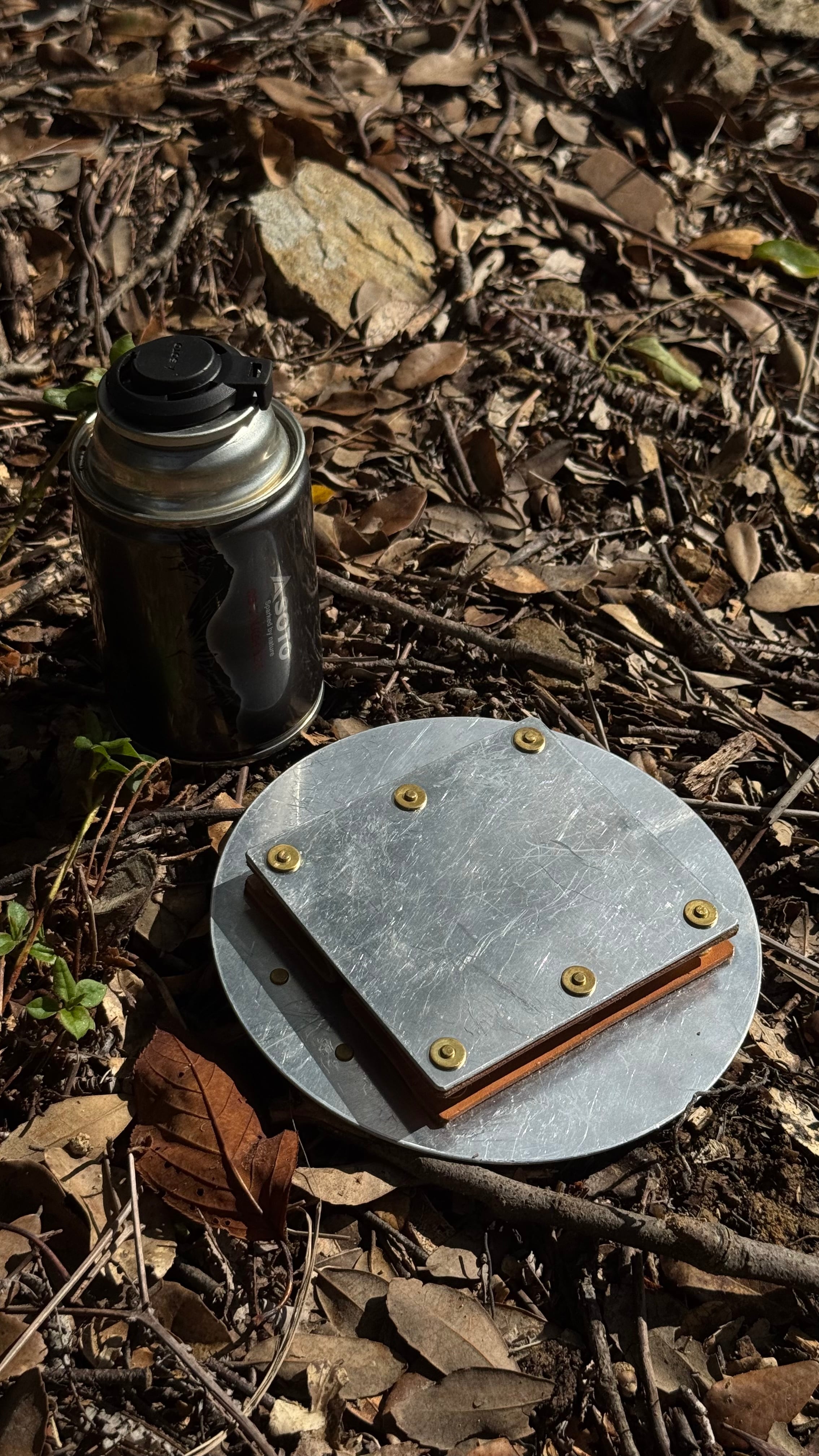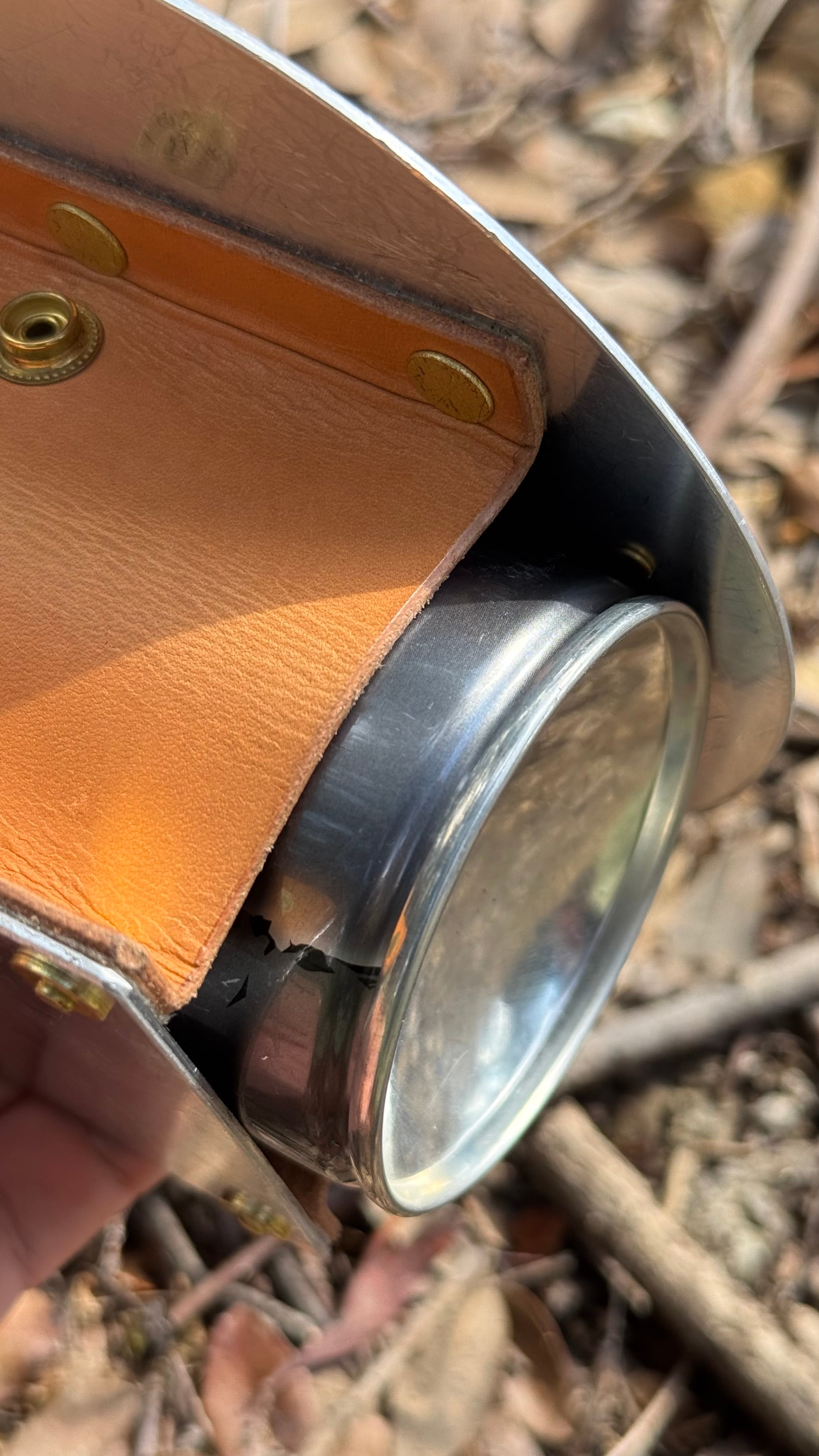 ■素材:無塗装アルミ 無垢真鍮リベット 真鍮ホック 本革(ヌメ革)